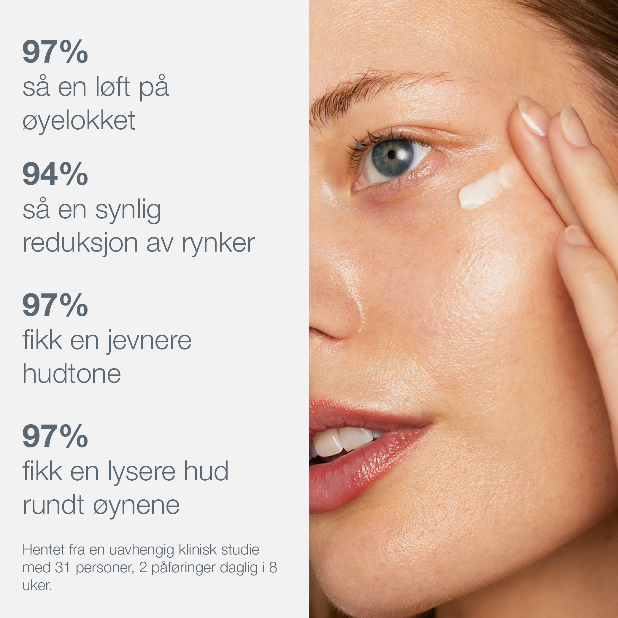 Huden rundt øynene er tynnere enn resten av ansiktshuden. Det betyr at du lettere vil kunne se skader som følge av miljøpåvirkninger akkurat her. Beskytt øyepartiet med dermalolgicas øyeprodukter som er utviklet for å beskytte mot ytre påvirkninger, samtidig som de fukter, lysner og minimerer mørke ringer og fine linjer rundt øynene.