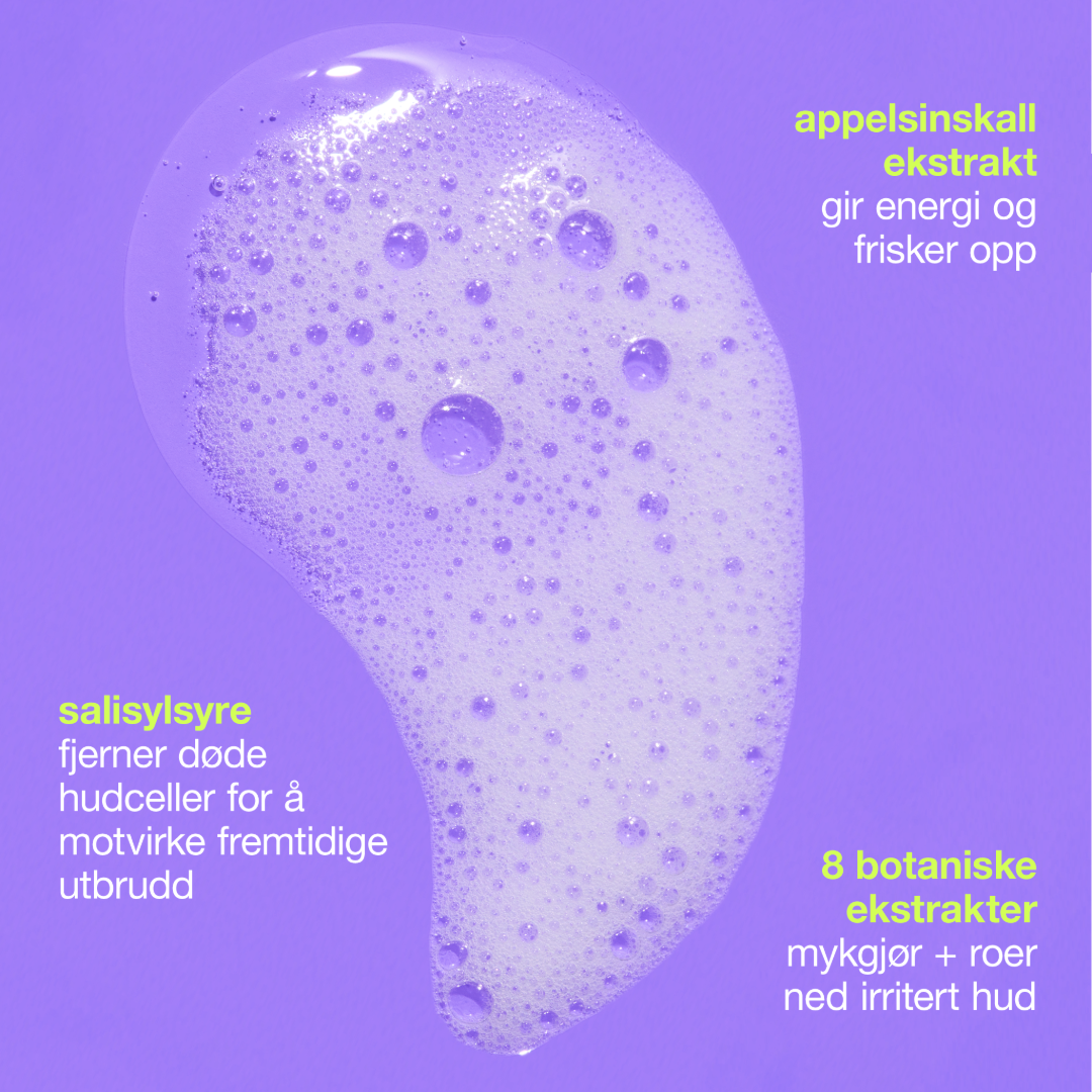 En skummende ansikts- og kroppsrens som hjelper til med å redusere utbrudd ved å fjerne døde hudceller, skitt og overflødig talg som tetter porene. Resultatet? En ren, frisk og balansert hud – uten å strippe huden for fukt.