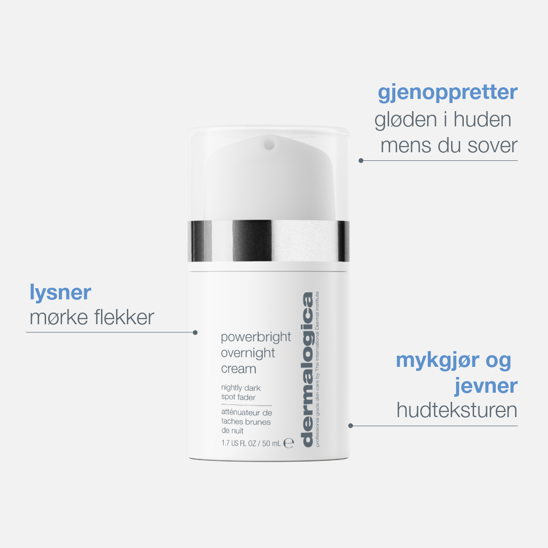 Nattkremen PowerBright Overnight Cream behandler pigmentering og ujevn hudtone samtidig som den gir fukt og næring til huden for den ultimate gløden når du våkner. Med denne kan du spille på lag med huden om natten og optimalisere den naturlige reparasjonsprosessen som skjer mens du sover!